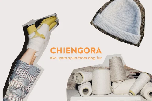 This blend has some give to it, which is preferable when knitting chien. Chiengora refers to yarn spun from dog hair.