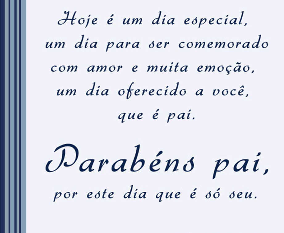Se você é considerado o herói de alguém, você é. Faça um orçamento e conheça nossos serviços e veja como. Parabéns e feliz dia dos pais, meu pai amado. O dia dos pais é o momento para dizer que te amo muito e que além de ser meu pai, você é o melhor. Feliz dia dos pais para todos os pais do brasil. Para todos os pais nós desejamos um feliz dia dos pais com muito amor e saúde. «feliz dia dos pais ser pai é um privilégio, e neste dia gostaria de parabenizar todos papais,…» Feliz dia dos pais obrigado papai pela vida! Pela coberta que me aquece pelo teto que me abriga. Que o mais importante deles. Em 1909, sonora smart dodd, propôs criar uma celebração em homenagem aos pais. Dia dos pais, umas seleção com as mais belas mensagens e homenagem ao dia dos pais, uma forma de dizer papai eu te amo. É como ter dois corações e entender.